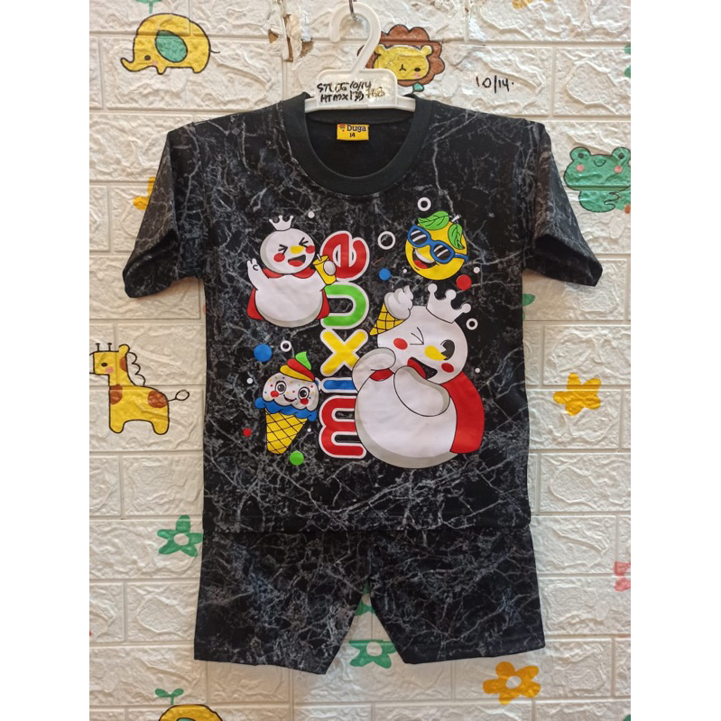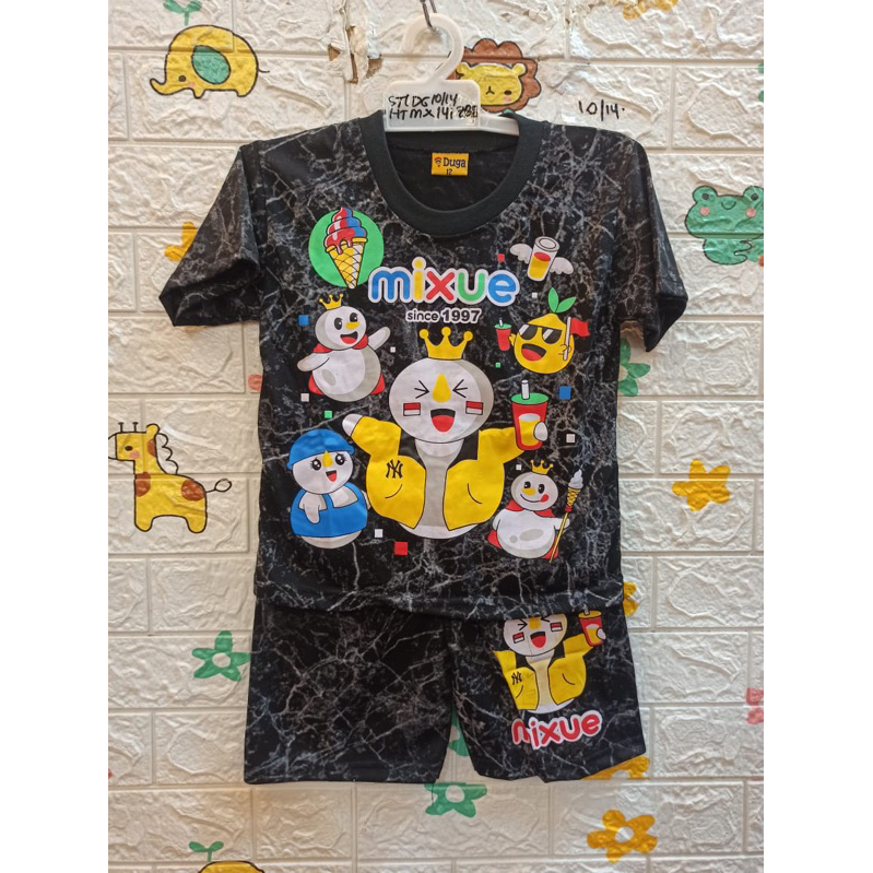 Detail SETELAN ANAK MOTIF MIXUE KIDS HITAM USIA 3-9 TAHUN MURAH