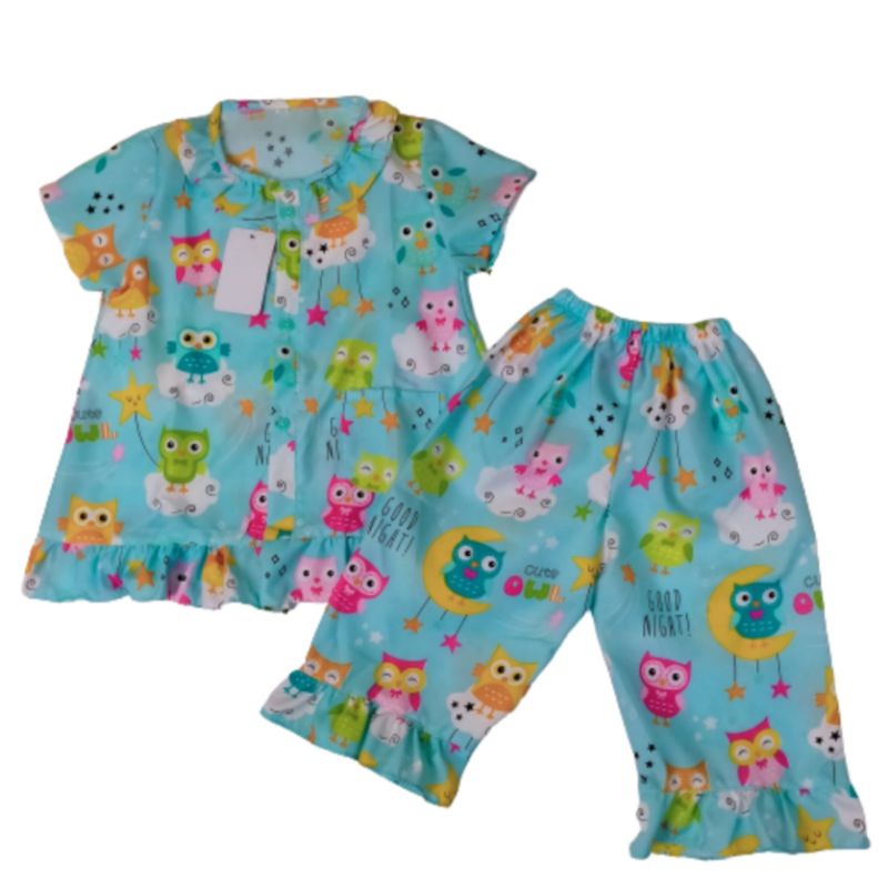 #PIYAMA RAMPLE ANAK *Bahan Polymicro *Tangan Pendek *Celana 3/4 *Saku Di Baju Sebelah Kiri *Kerah Rample *Celana Bawah Rample