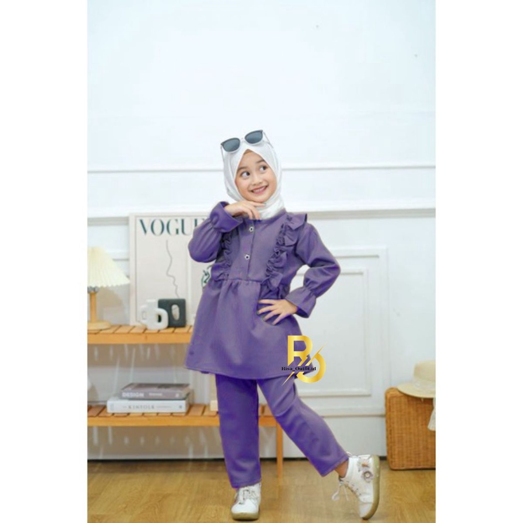 Setelan Anak Perempuan 1-5 Tahun Oneset Anak Crinkle Airflow Premium Baju Muslim Anak Perempuan OneSet Anak Perempuan Setelan Kemeja Anak Setelan Rayon Premium Set Tunik Anak
