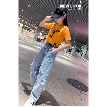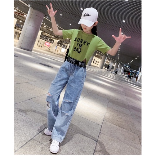 Fashion Bayi & Anak > Pakaian Anak Perempuan > Jas & Setelan > Setelan anak PEREMPUAN CROP SET import SORRY IM BAD + CELANA JEANS TEBAL KEKINIAN setelan anak teenager
