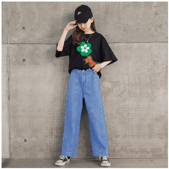 Setelan anak perempuan import BUNGA HIJAU +JEANS TEBAL- setelan anak teenager perempuan import