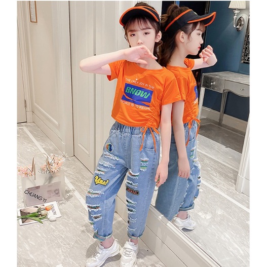 Setelan anak perempuan import MOTIF BNOW +JEANS TEBAL- setelan anak teenager perempuan import