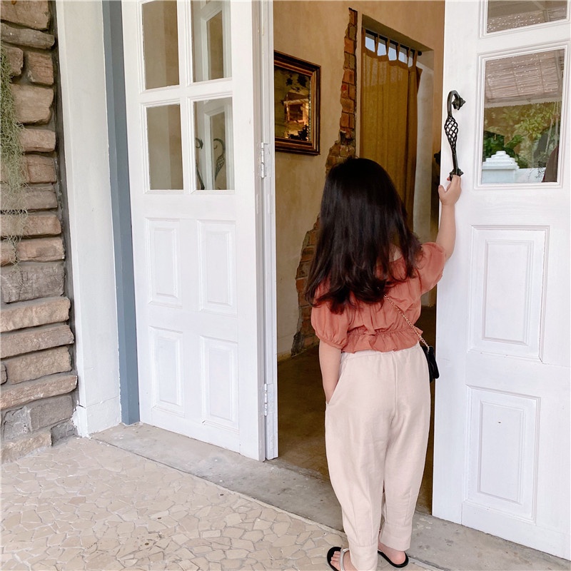 Setelan Fashion Pakaian anak : - 1pc Atasan crop tee - 1pc celana panjang dengan aplikasi kancing - pinggang karet Import Quality - 100% baru Summer Design - dirancang untuk anak yg aktif bergerak di musim panas, bahan halus dan lembut - menyerap keringat cocok untuk anak yang aktif dan trendy - nyaman dan ringan dipakai