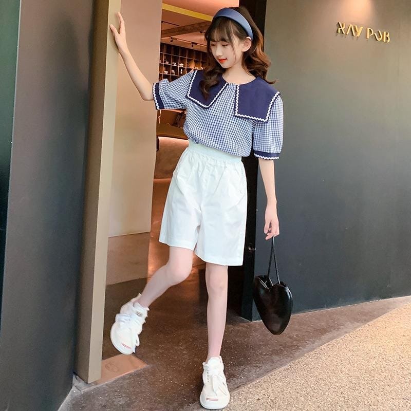 Detail Setelan Anak Perempuan Teenager Sailor Square Navy