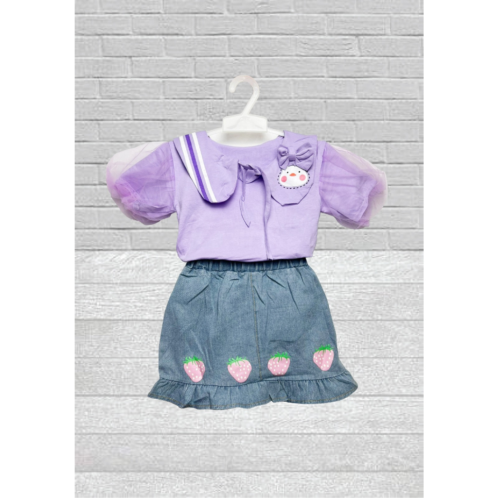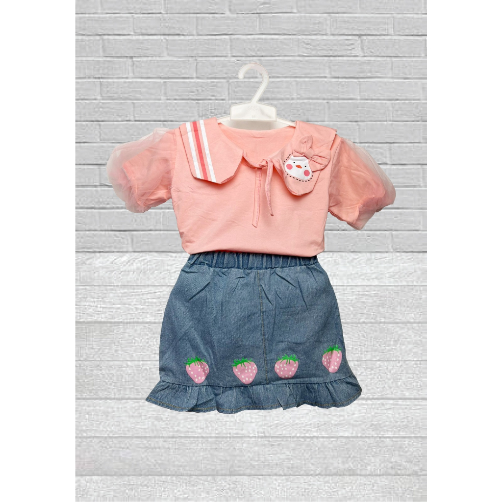 SETELAN ANAK Bahan Lembut dan Adem, Bawahan Jeans UKURAN : 1-2 TAHUN = LINGKAR DADA 54 CM, PANJANG BAJU 35 CM, PANJANG ROK 25 CM 2-3 TAHUN = LINGKAR DADA 62 CM, PANJANG BAJU 38 CM, PANJANG ROK 28 CM UMUR HANYA PERKIRAAN YA KAK, SILAHKAN UKUR BADAN ANAK SUPAYA PAS.