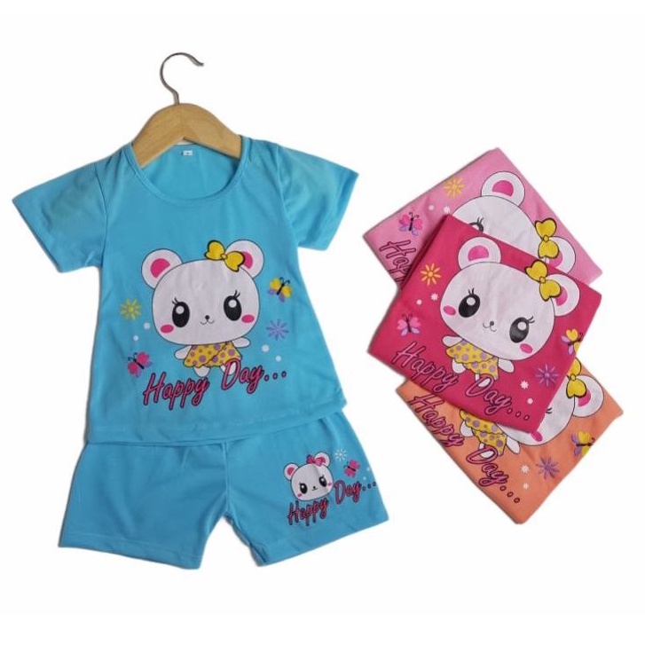 Detail SETELAN ANAK SIKUNING PAKAIAN BAJU ANAK PEREMPUAN 2-7 TAHUN MOTIF HAPPY DAY CELANA PENDEK LENGAN PDK