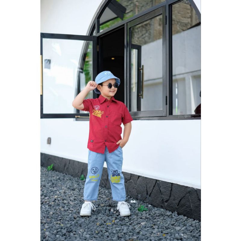 *SPESIFIKASI ✅* *📌Bahan Kemeja Katun Poplin* *📌Sablon DTF premium* *📌Aplikasi saku pada kemeja hidup* *📌Celana denim 10onz* *📌1stel baju sudah include 1buckethat denim kualitas No kaleng2*