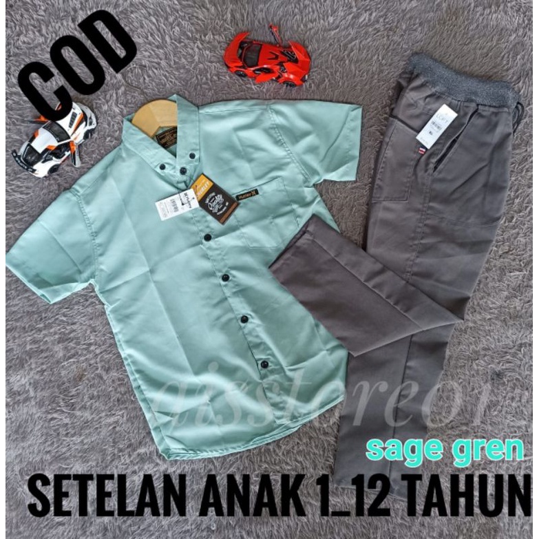 Detail setelan anak usia 1-12tahun kemeja dan celana chinos