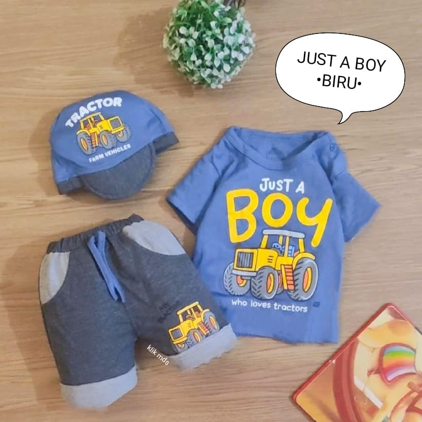 Setelan Baju Anak Bayi Laki-Laki Atasan Dan Celana Motif Kucing Belang Dan Anak Bear Estimasi Usia 0-6 Bulan Free Topi