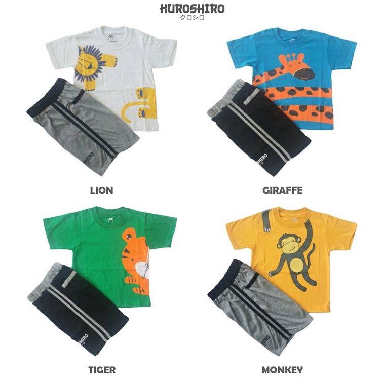 Detail KUROSHIRO - Setelan Baju Anak Laki Laki 1-9 Tahun Joger Boxer Zoo Kaos Kuroshiro