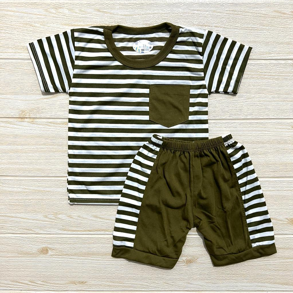 Setelan Baju Anak Laki Laki Set Kaos Motif Salur Baju Baby Gracia