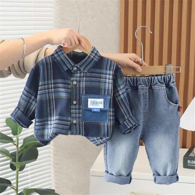 Setelan baju anak laki-laki usia 6 bulan - 5 tahun MOTIF KEMEJA NAVY keren SET premium impor
