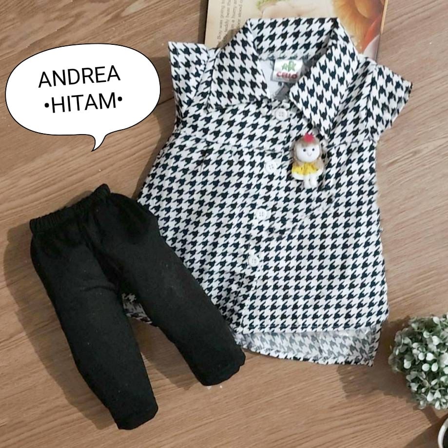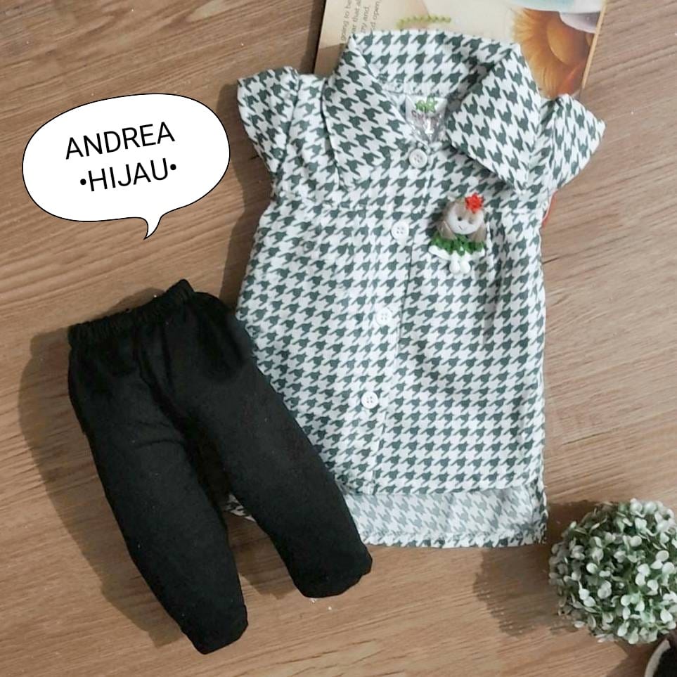 Setelan Baju Anak Perempuan / Baju Bayi Cewek Kemeja Lengan Pendek Dan Celana legging Motif Andrea Denim Usia 0-18 Bulan
