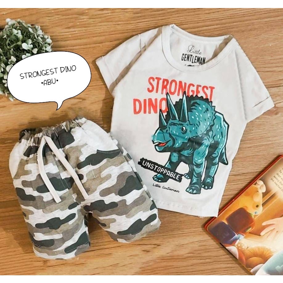 Fashion Bayi & Anak > Pakaian Bayi > Set > Setelan Baju Bayi Anak Laki-laki Usia 0-6 Bulan Motif Strongest Dino, Big Bros Dan Bon Voyage Atasan Kaos dan Celana