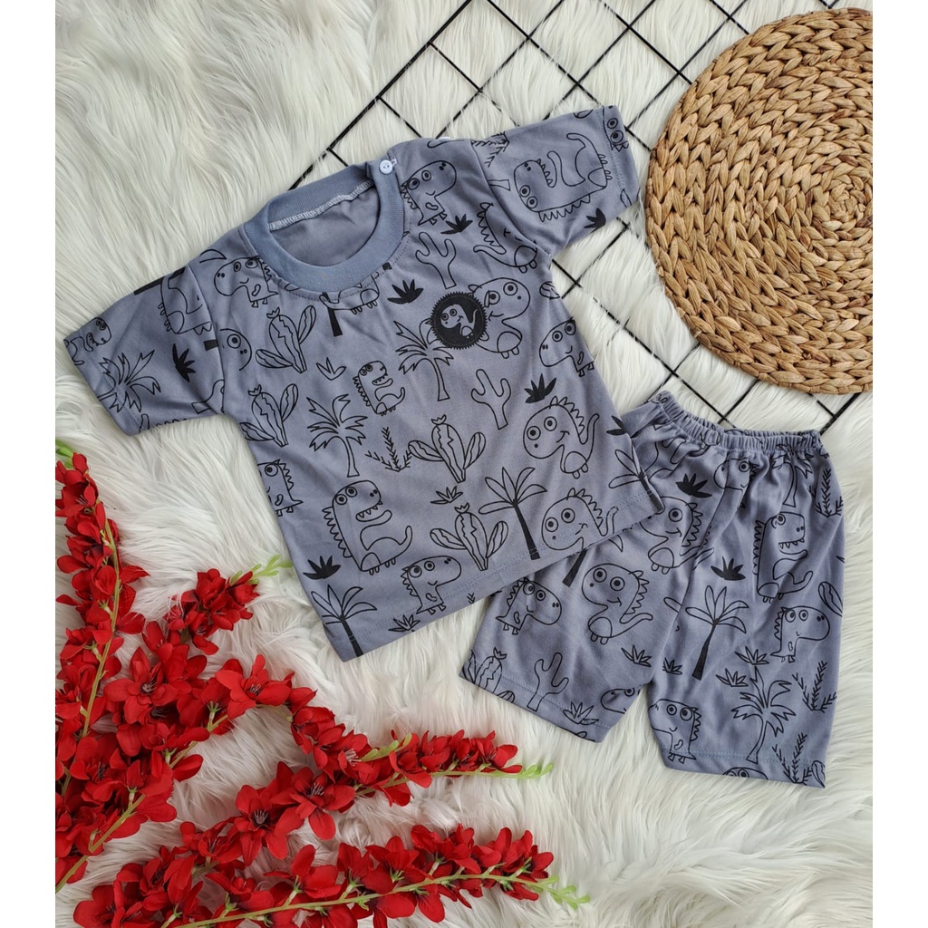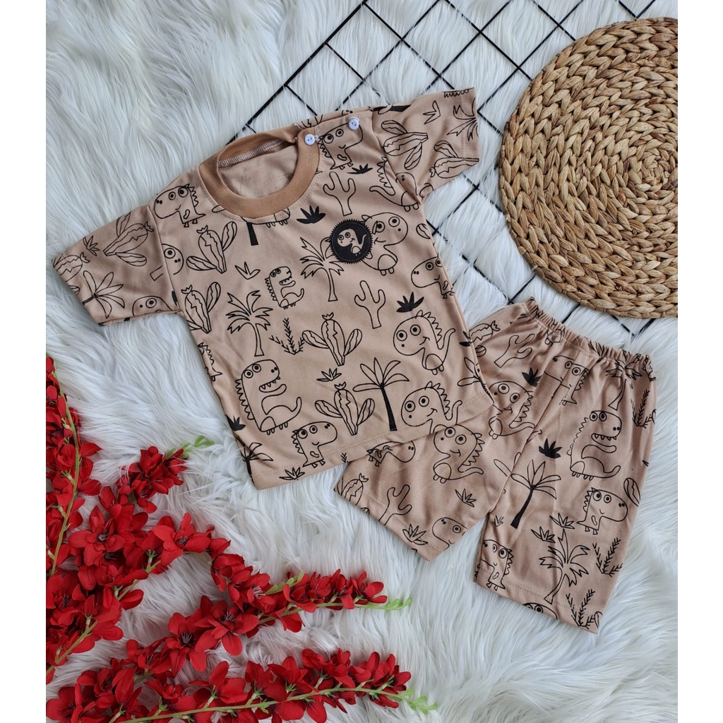 Detail Setelan baju bayi laki laki laki perempuan lengan pendek motif SAFARI PENDEK 3-18 bulan