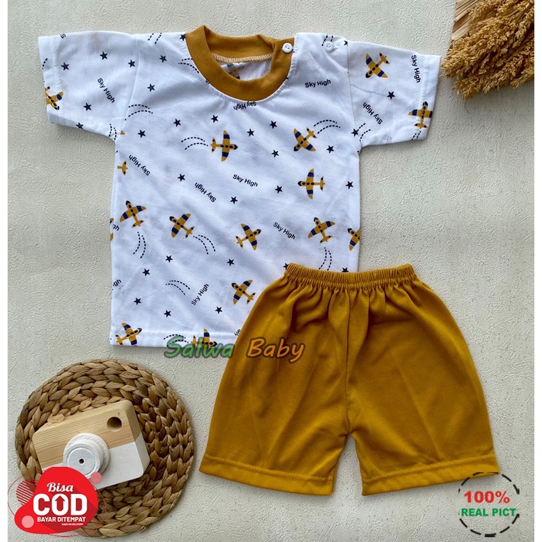 Detail Setelan Baju Bayi Lengan Pendek Motif Pesawat Usia 3-12 Bulan