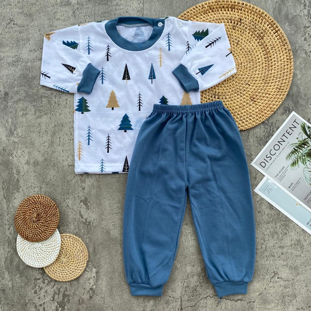 Setelan Baju Bayi Lengan Panjang Kancing Pundak One Set Piyama Motif Fir Tree Usia 3-12 Bulan - Salwa Baby