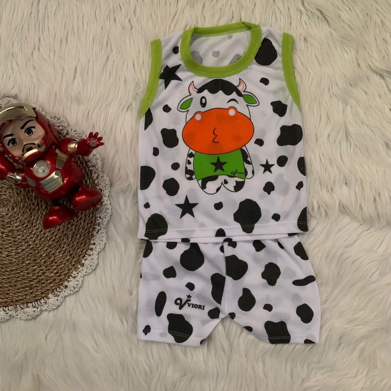 Setelan baju bayi lengan kutung COW setelan lekmong usia 3-12 bulan