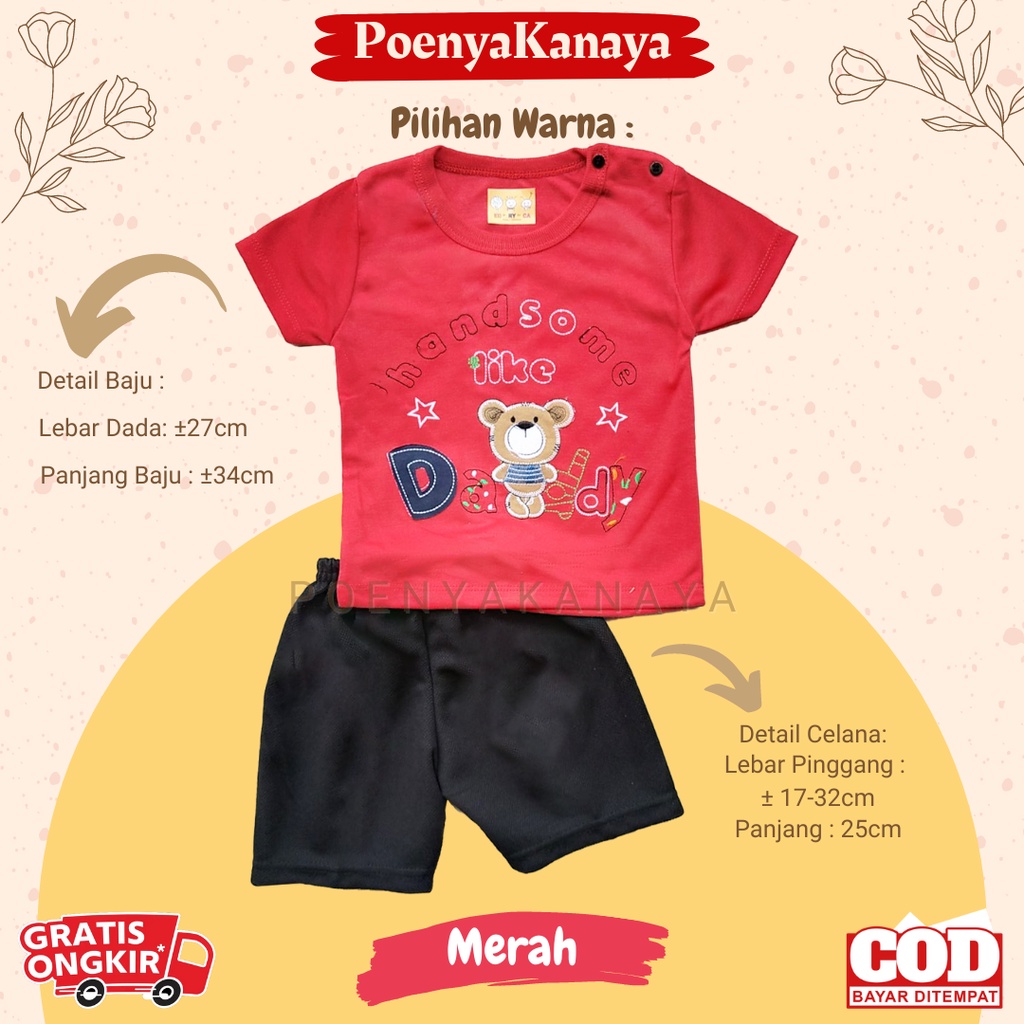 Detail Setelan Baju Bayi Pendek Laki Laki EDRYCA Warna Biru Merah 6-12 Bulan STL07