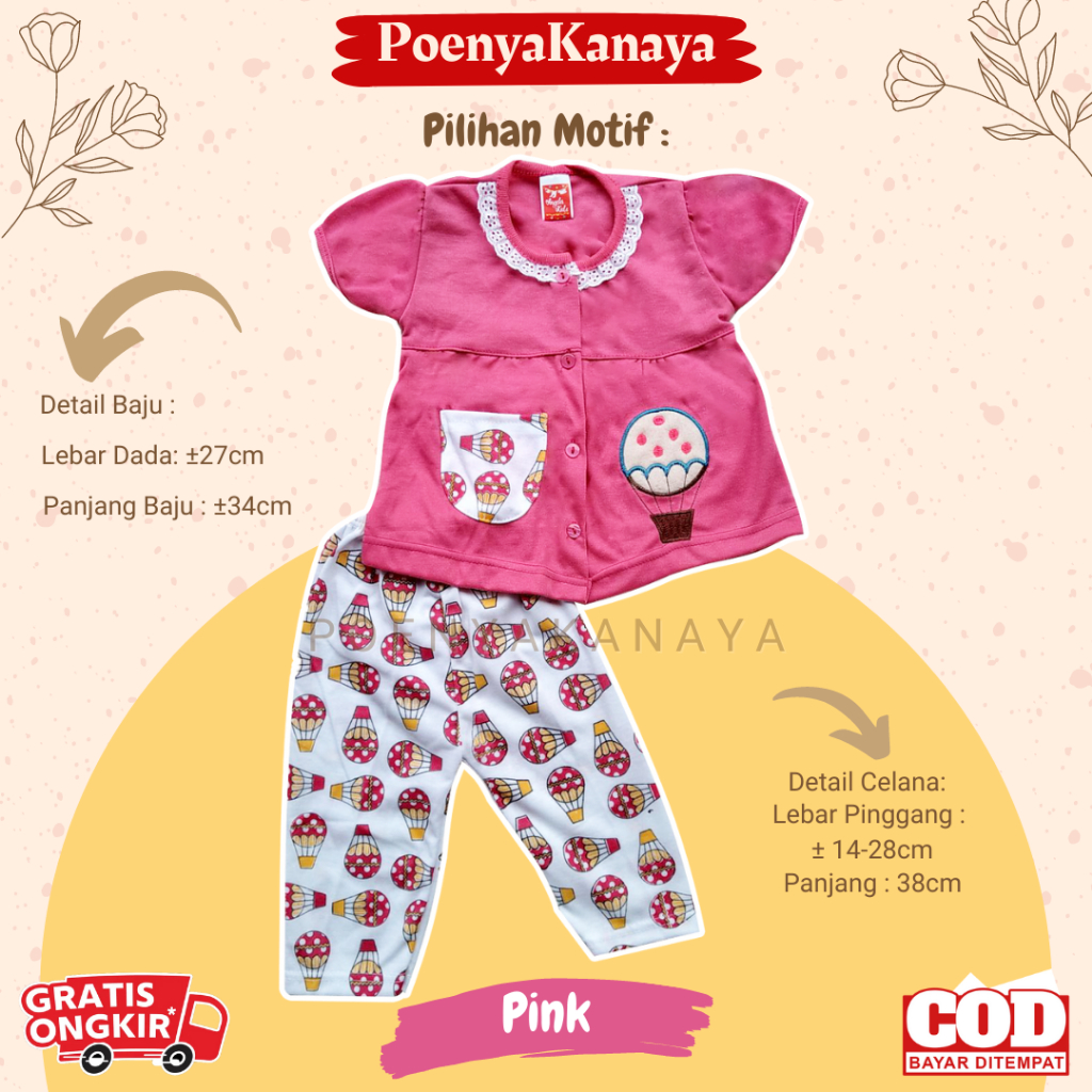 Detail Setelan Baju Bayi Piyama Bayi Pendek Perempuan BALON UDARA Angela Kids Size 6-18 Bulan SPY58