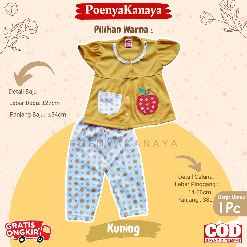 Detail Setelan Baju Bayi Piyama Bayi Pendek Perempuan POLKA APEL Angela Kids Size 6-18 Bulan SPY33