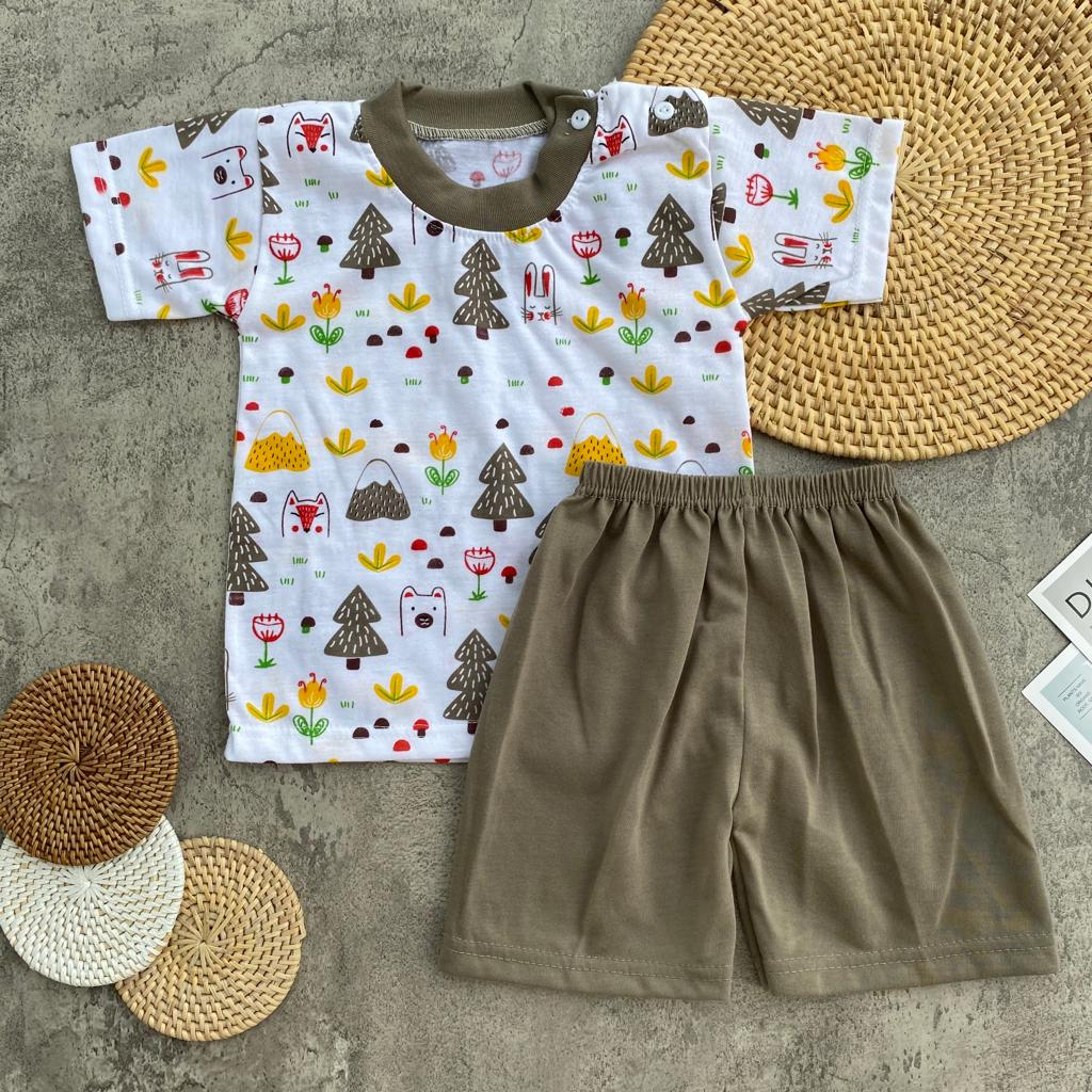 Detail Setelan Baju Bayi Piyama Bayi Lengan Pendek Kancing Pundak Motif Cemara Usia 3-12 Bulan Anababy
