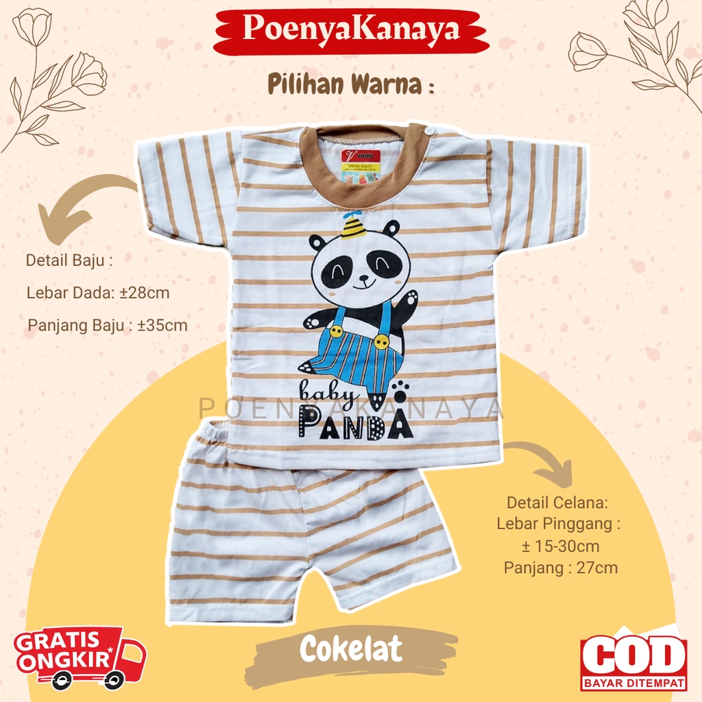 Detail Setelan Baju Bayi Piyama PENDEK PANDA SALUR Viori Size 6-18 Bulan STL08