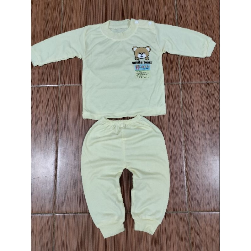 Detail Setelan Baju Bayi Piyama Lengay Panjang Kancing Pundak Motif Smile Bear Usia 0-12 Bulan