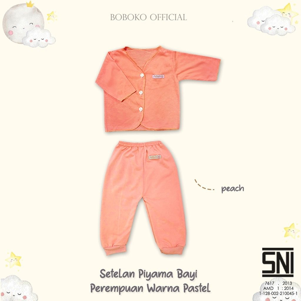 1. SNI, Kualitas Premium, ORI 2. Untuk baby newborn 0-3 bulan, unisex 3. Bahan lembut dan aman untuk baby 4. Untuk baju lengan panjang ada kancingnya, untuk celana ada karet pada bagian pinggangnya 5. Varian :- 1 pasang (1 baju dan 1 celana ) 6. Ukuran : Baju Lengan panjang - Panjang : 27 cm - Lebar : 24 cm - Panjang Lengan : 16 cm
