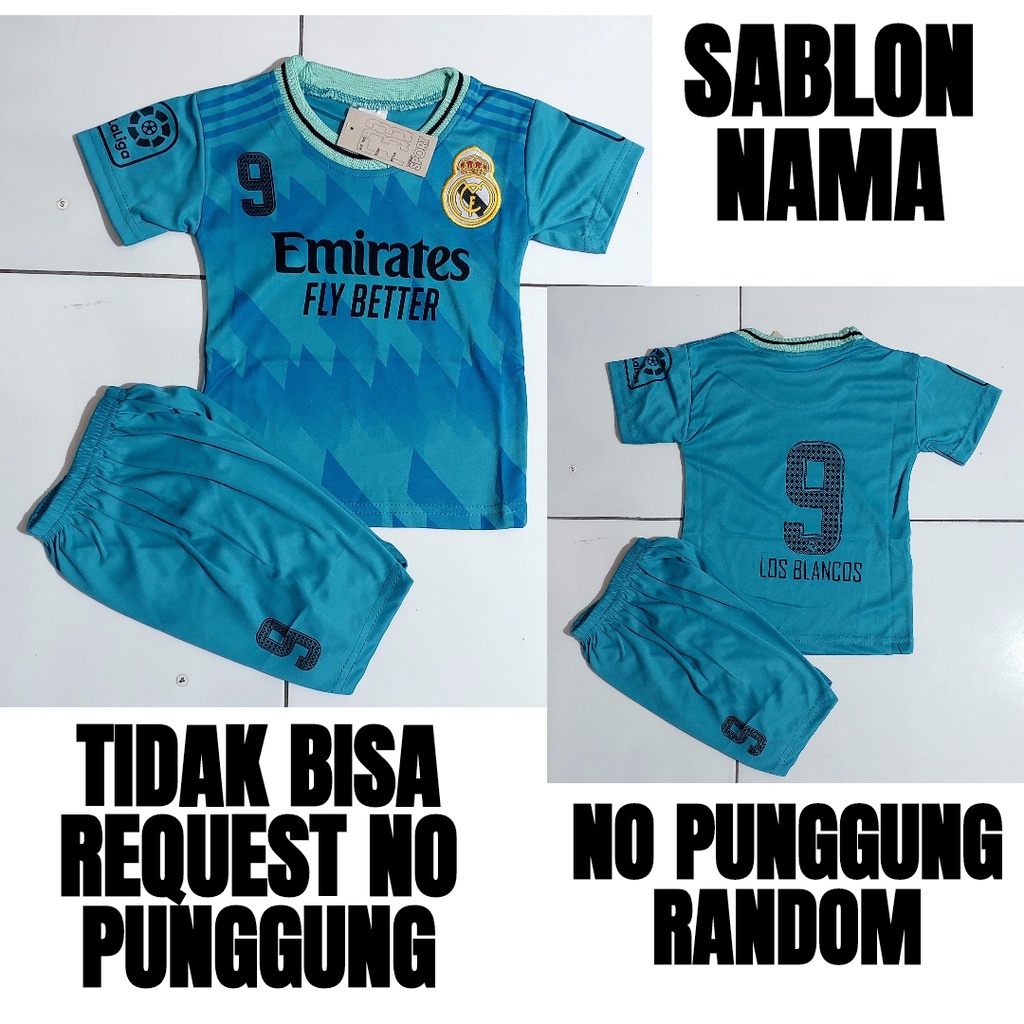 Detail setelan baju bola anak/setelan baju futsal/baju bola madrid tosca/baju futsal murah