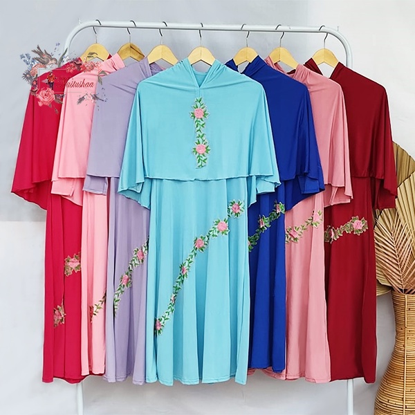 DETAIL: •Gamis Syari Anak •Motif Bordir Tempel •Include Bergo