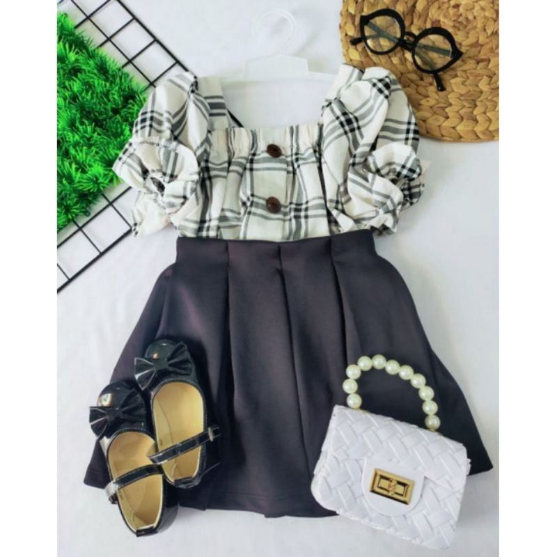 Setelan Baju Ifana Sabrina Kids Korean Style / One Set Blouse Top Anak Perempuan Lengan Balon 2-4 Tahun