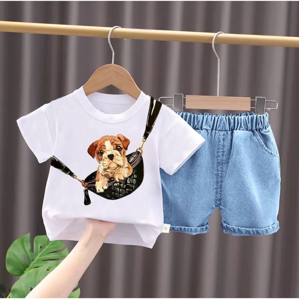 setelan baju kaos celana jeans bayi anak unisex motif dogs wasbag tas usia 6 bulan-5 tahun best quality terbaru termurah/ setelan baju kaos celana jeans bayi anak laki-laki/ setelan baju kaos celana jeans bayi anak perempuan/fashion baju celana denim anaksetelan baju kaos celana jeans bayi anak unisex motif dogs wasbag tas usia 6 bulan-5 tahun best quality terbaru termurah/ setelan baju kaos celana jeans bayi anak laki-laki/ setelan baju kaos celana jeans bayi anak perempuan/fashion baju celana denim anak