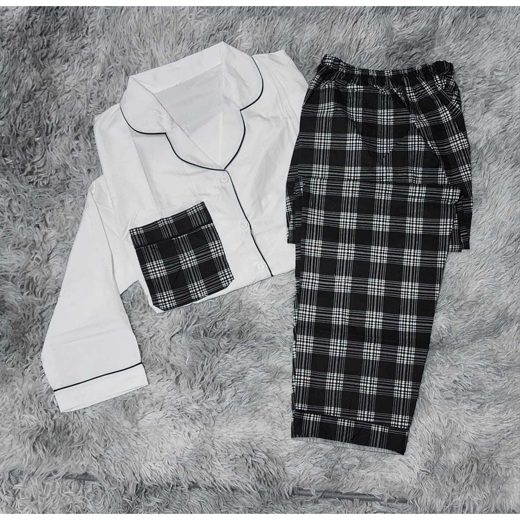 Piyama Katun PoliSter Soft Kombinasi Kotak Keterangan Bahan Baju atas Memakai Bahan Katun IMA Soft tekstur kain Tipis Tidak panas Nyaman halus dipakai di badan dan walaunpun Putih tipis Tidak menerawang Celana memakai Katun Jepang dengan print motif Sehingga menampilakan Campuran kombinasi yang lucu dan unik Nyaman Dimata