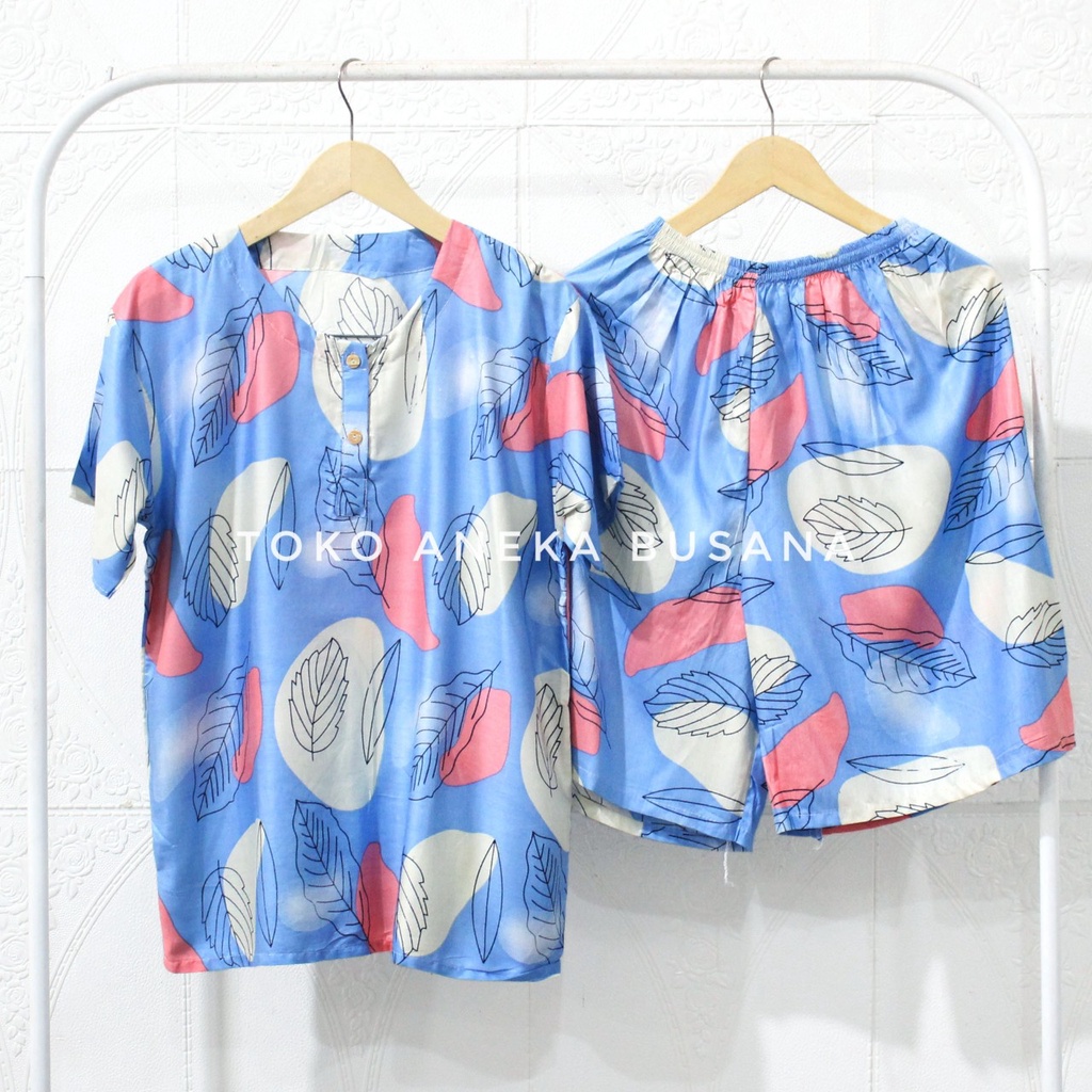 Setelan baju tidur piyama pendek motif tie dye Bahan rayon super Lembut Adem dan sangat nyaman di pakai Cocok untuk baju tidur atau harian santai bisa untuk busui Motif Daun singkong Satu ukuran Allsize Reguler - Jumbo bisa pakai