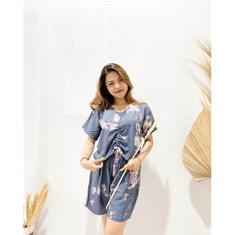 Detail Setelan Bali Tyedie Serut Model Kupu Terbaru Viral one set smoke