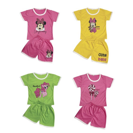 SETELAN BAYI PEREMPUAN Usia 6 bulan - 1 Tahun : Lingkar dada 56 cm, Panjang Baju 33 cm, Lebar pinggang 14-28 cm Usia 2-3 Tahun : Lingkar dada 60 cm, Panjang Baju 37 cm, Lebar pinggang 16-32 cm Tersedia 4 Varian Gambar