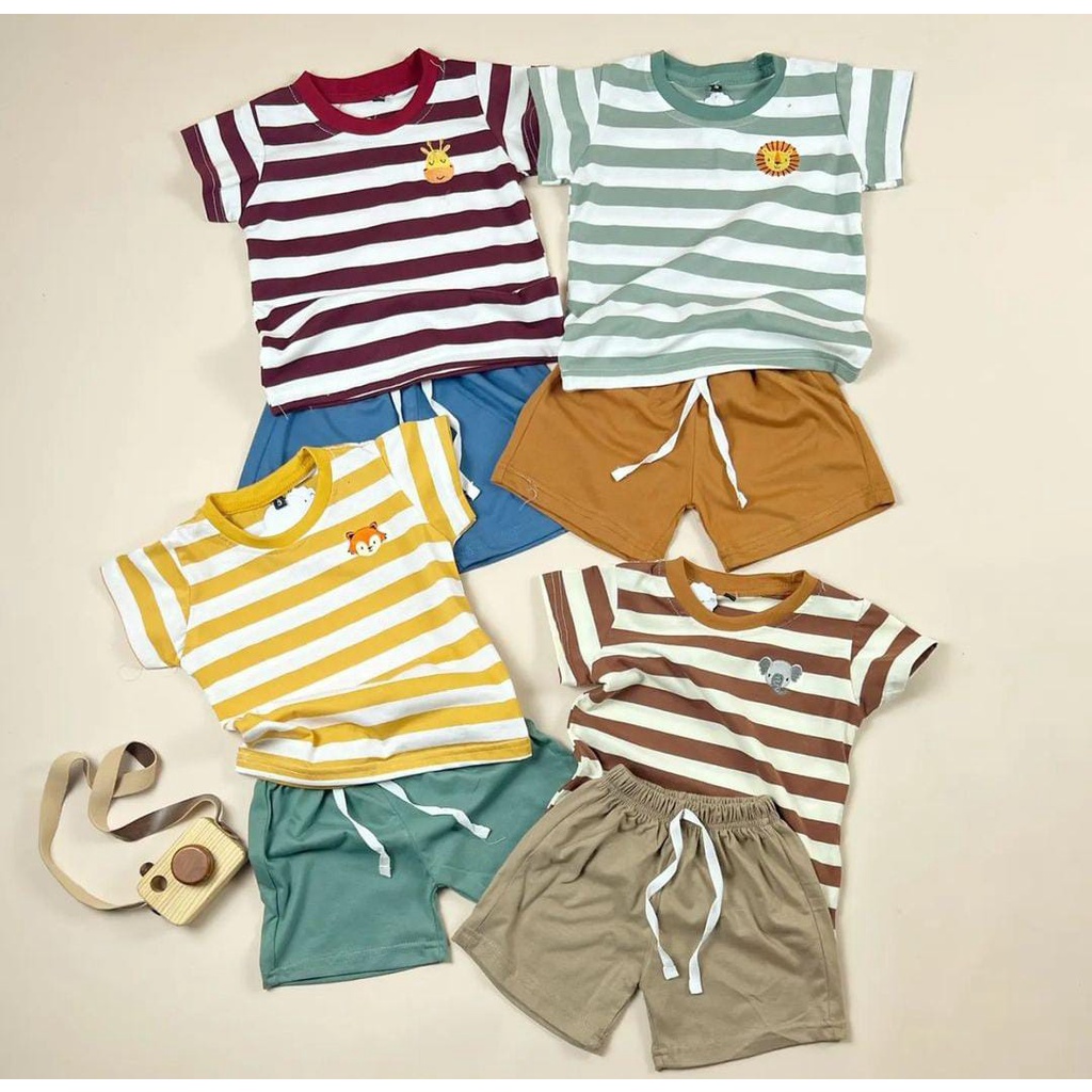 Berbahan Kaos Cotton combed stripes 24s Bahan Celana Cotton combed 24s Unisex bisa buat Cowok/Cewek Variasi Aplikasi Bordir Premium Embordiery Casual & simple Nyaman dan adem dipakai anak Nyerap keringat Bikin betah anak