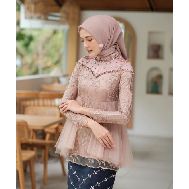 Detail Setelan Blouse Alyana Nude Selendang modern-Kebaya Modern- Selendang-Kebaya Kekinian-Kebaya Wisuda-Kebaya Lamaran-Kebaya Pesta-Kebaya Selendang Kebaya bahan tulle premium