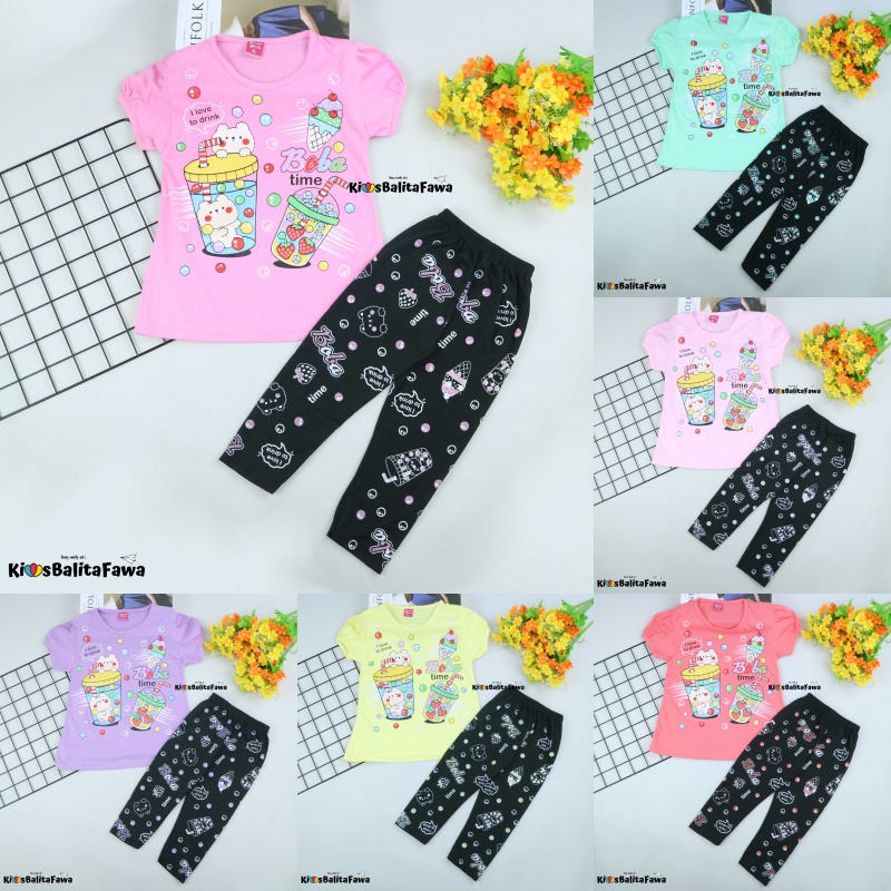 Setelan Boba uk 2-6 Tahun / Baju Karakter Legging Anak Perempuan Celana Panjang Import Babycinnamon