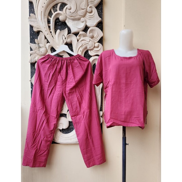 SETELAN CELANA PANJNG BALI - Atasan Lingkar dada +/- 105 - 110cm Panjang baju 60cm - Bawahan Lingkar pinggang 112cm setelah melar Lingkar paha 62cm Panjang celana 95cm