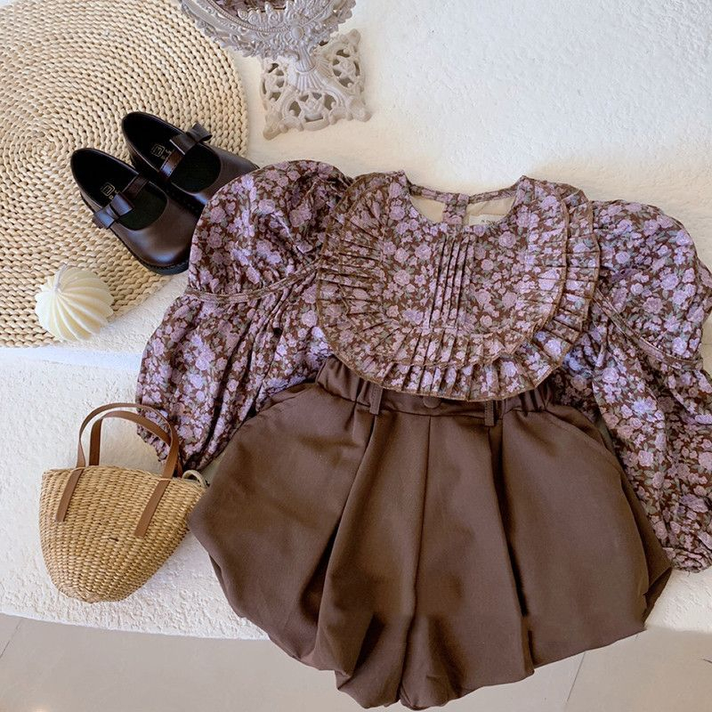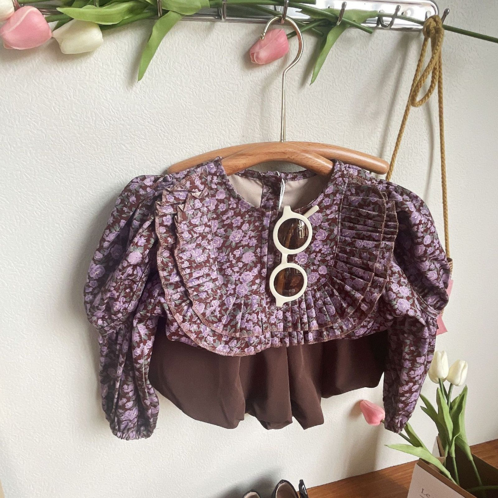Detail Setelan Coklat Anak Perempuan Motif Bunga Ungu
