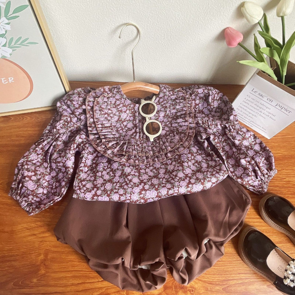 Detail Setelan Coklat Anak Perempuan Motif Bunga Ungu