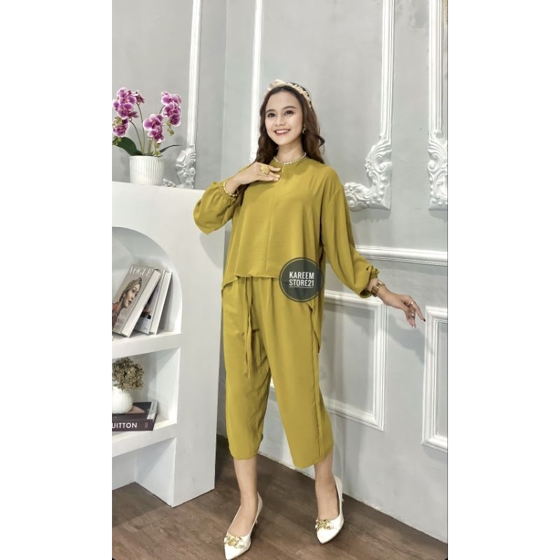 𝘋𝘌𝘛𝘈𝘐𝘓 𝘔𝘖𝘋𝘌𝘓 : atasan model blouse livia Lady Crush Busui friendly (resleting depan) celana panjang berkaret lengan kerut. Muat BB sampe 85kg