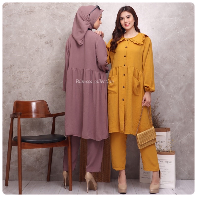 Video perkenalan produk SETELAN CRINKLE JENNY SET STELAN KANTONG DEPAN SETCEL LONG TUNIK BUSUI BUMIML GROSIR ECER. Sumber: Shopee.