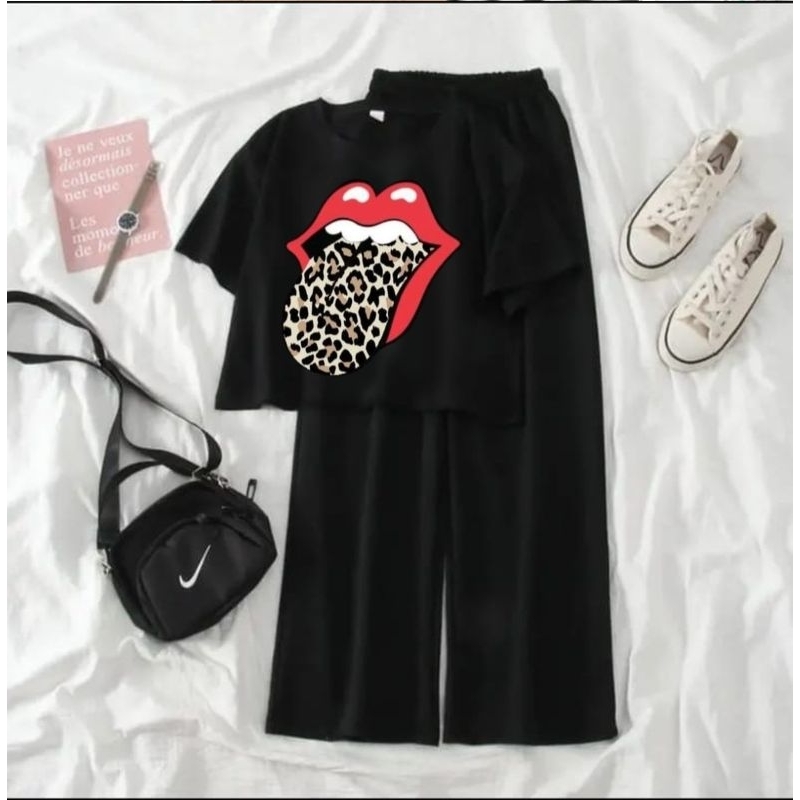 SETELAN CROP LIDAH LEOPARD KOMBINASI