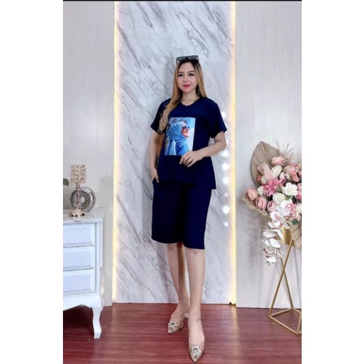 Pakaian Wanita > Set > Set Wanita > SETELAN EMBLEM LENGAN PENDEK CELANA PENDEK