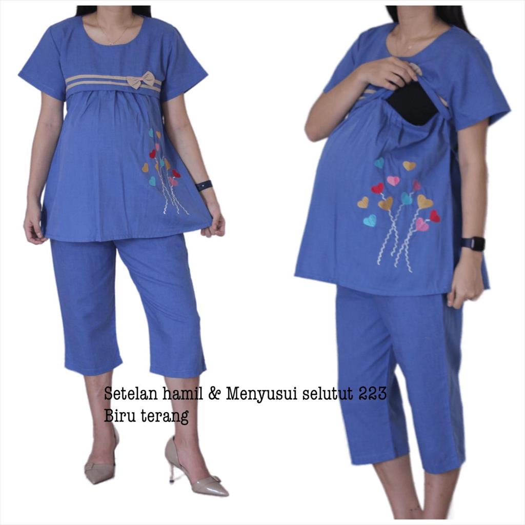 Setelan Ibu hamil dan menyusui berbahan katun dengan model oblong Terdapat resleting kiri kanan yang dapat dibuka untuk menyusui Simple dan nyaman dipakai hingga 9bulan Dapat dipakai untuk berpergian atau santai Celana dapat disetel dengan karet yang dapat di sesuaikan Lingkar dada 110 cm Panjang blus 70 cm Panjang celana 65 cm Lingkar perut celana 120cm Lingkar paha 60cm Allsize dan blouse bertalibelakang