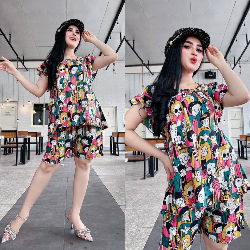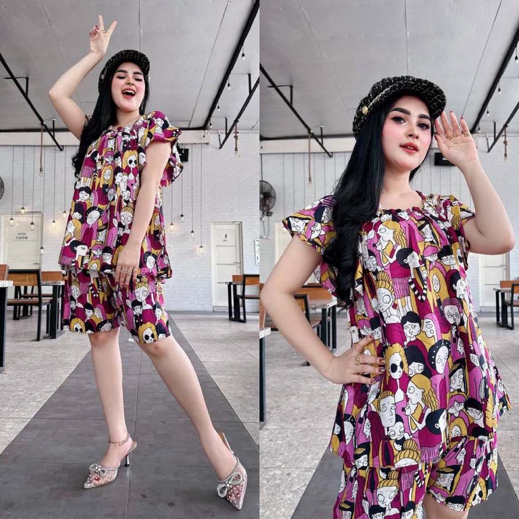 Detail Size : Lingkar Dada : -/+ 115 cm Panjang Baju : -/+ 63 cm Lingkar Pinggang : -/+ 58 - 110 cm Panjang Celana : -/+ 55 cm Bahan : Rayon santung