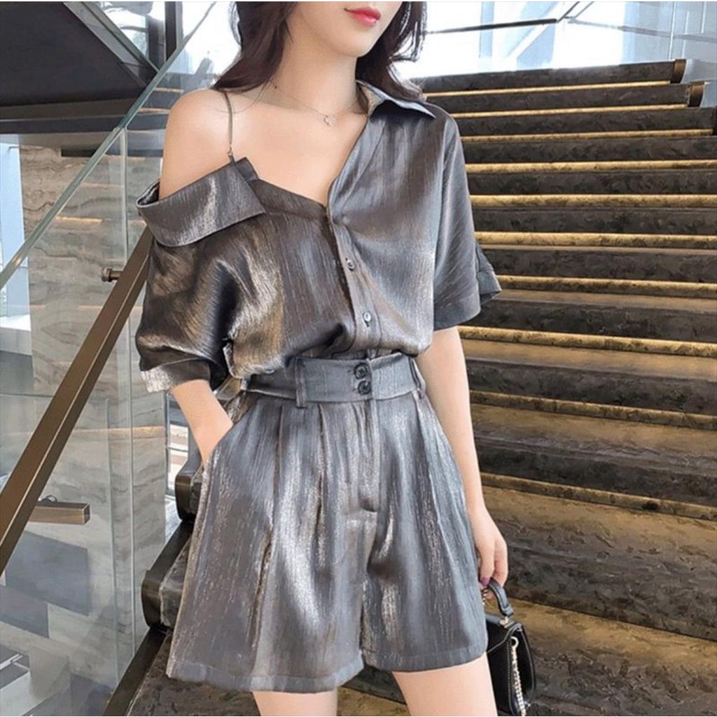 Detail SETELAN HOTPANTS SHIMER KOREA BAHAN PREMIUM BANGKOK BKK,4230